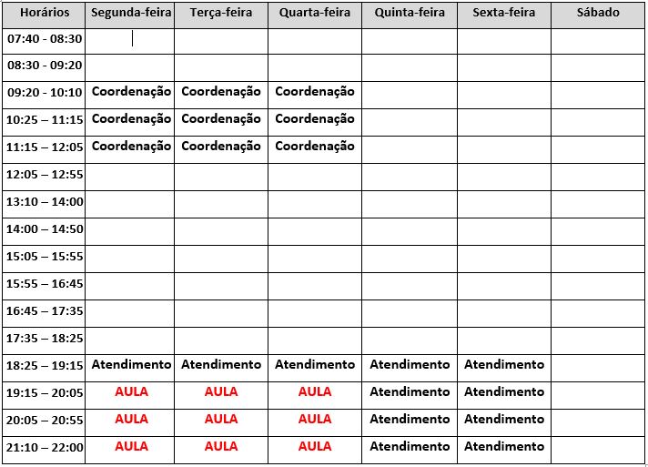 *As informações divulgadas poderão ser alteradas sempre que necessário, para atender a legislação vigente, o Plano de Carreira Docente e o Regimento Interno da Instituição.